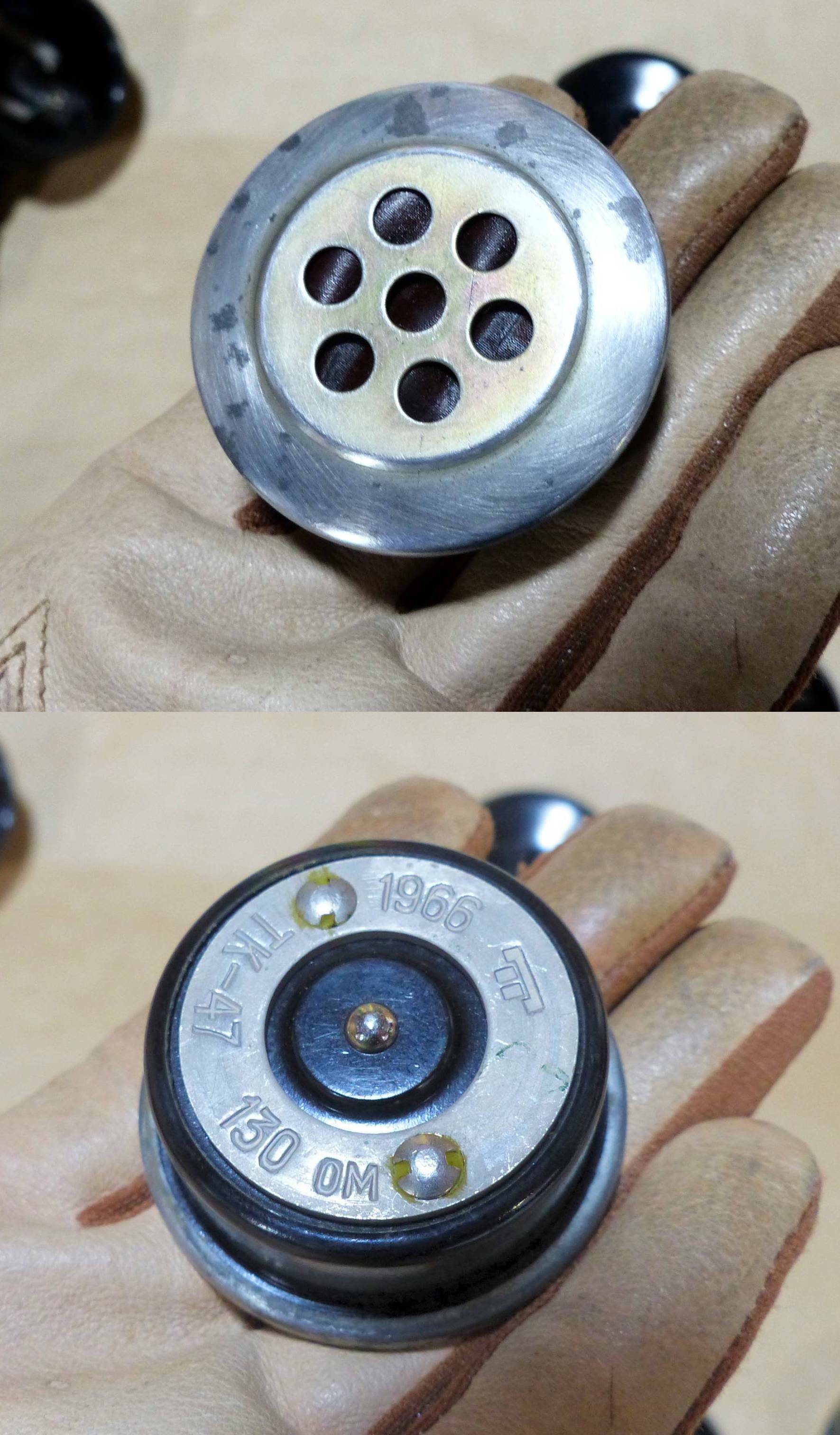 ロシア 軍用ハンドセットPTT付き 60年代 ロシアマンパック4ピン仕様 錆傷有り 動作確認品 H1