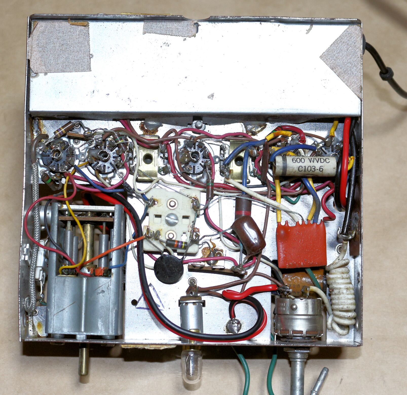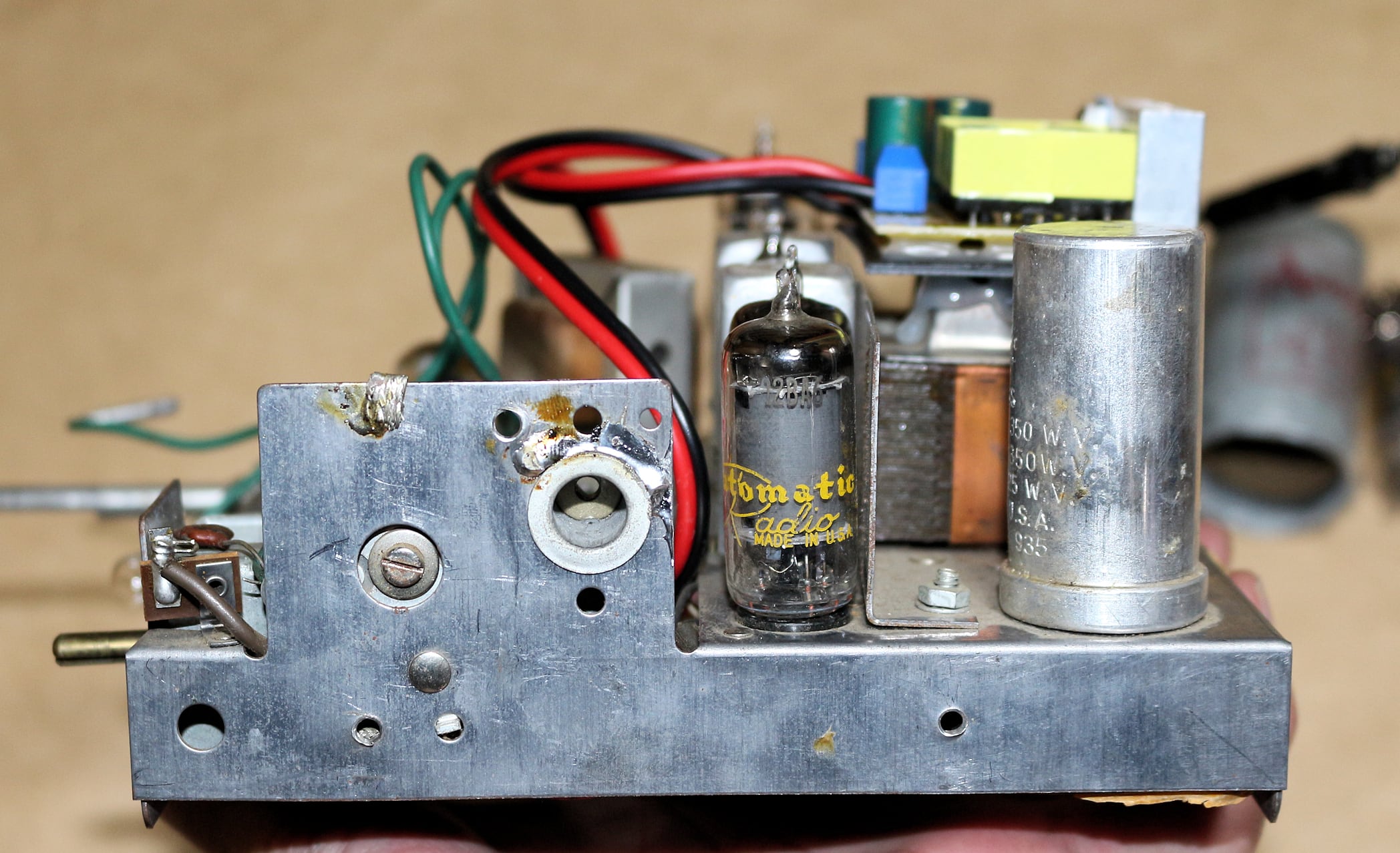 純正回路はそのままにバイブレーターと整流管を外し高圧を注入しただけです。
