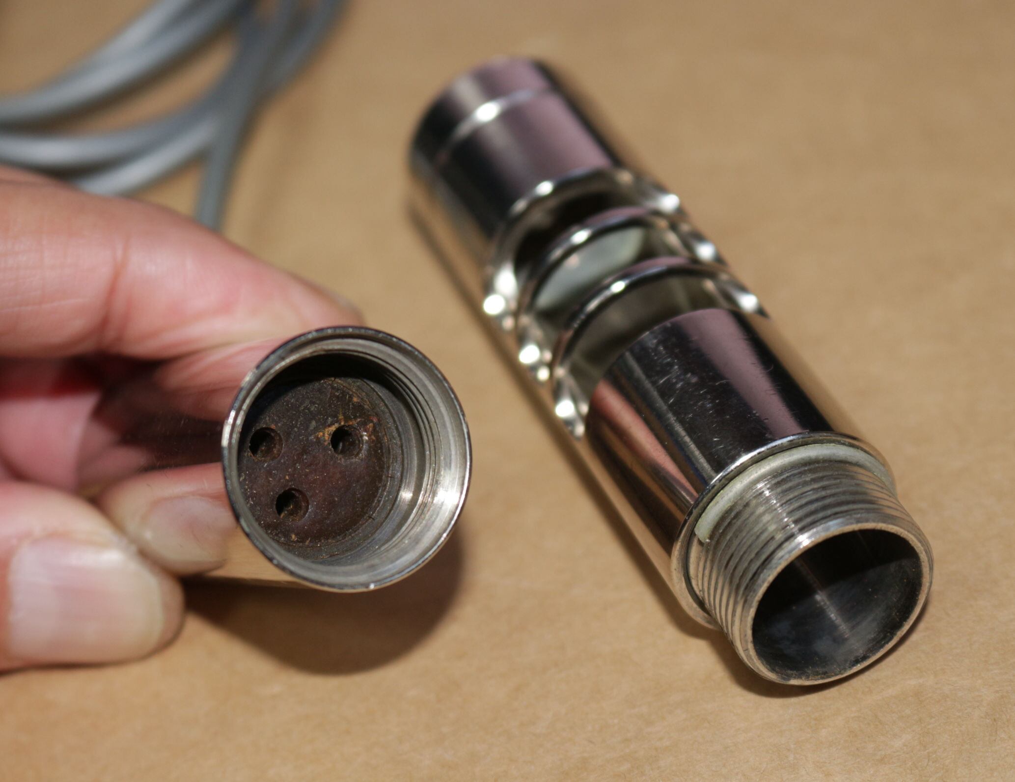 プローブ内は3PINソケットでピン1が芯線、ピン3がグランドです。