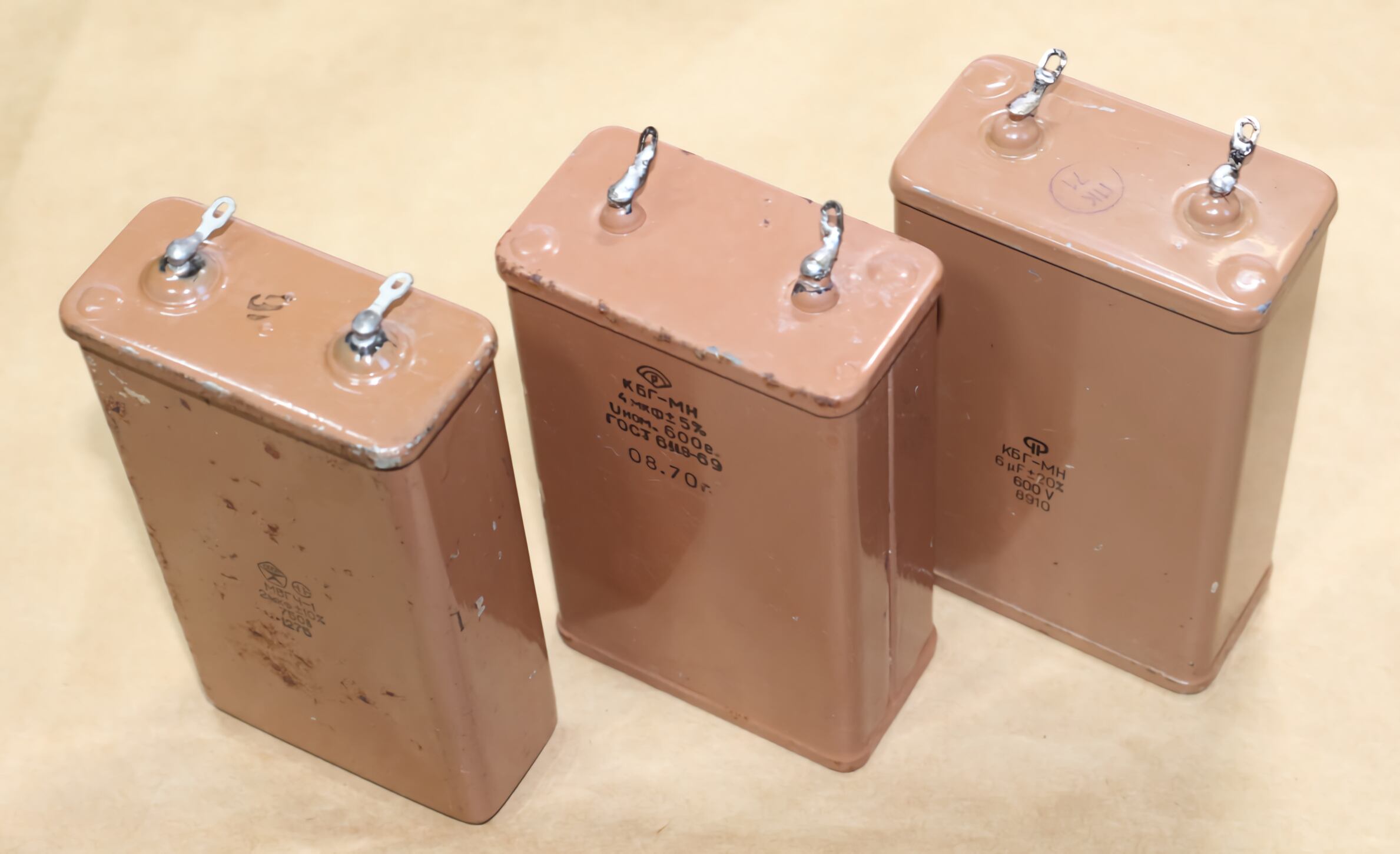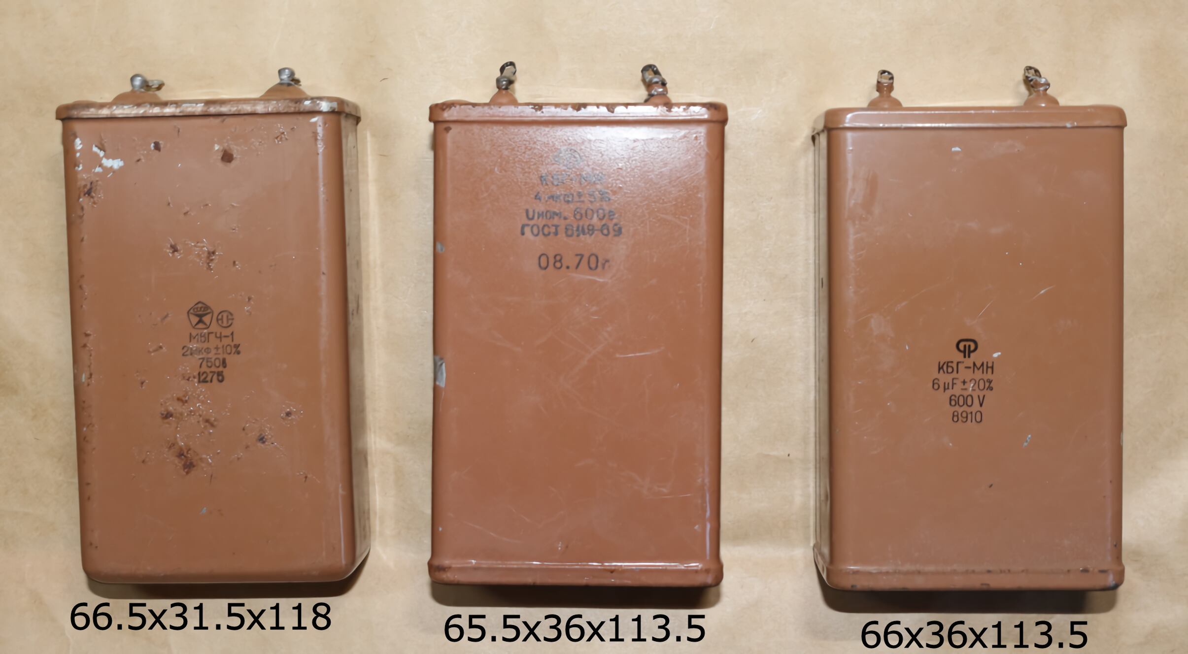 大型 3種3個 ロシア軍用 ビンテージオイルコン КБГ МБГ 2uF 750V, 4uF 600V, 6uF 600V. 3種3個セット 傷錆有り