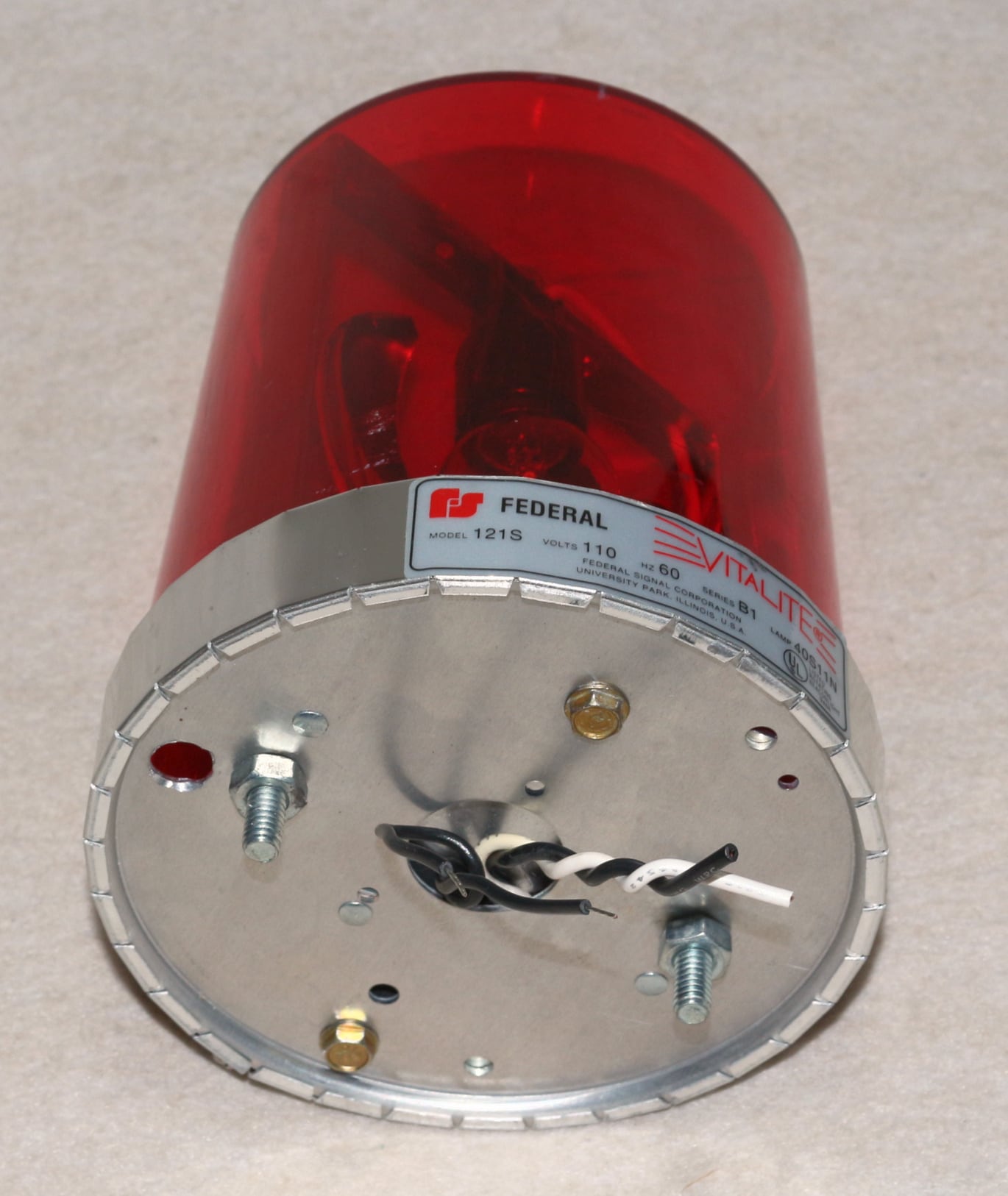 アメリカ製 FEDERAL 赤色回転灯 VITALITE 121S 100Vで動作 USED ジャンク パトライト風